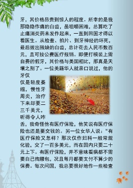 舌,我奇怪他有医疗保险,他笑说有医疗保