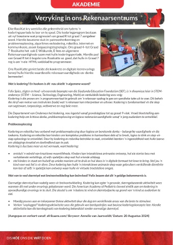 Kodering en robotika hou verband met probleemoplossing deur logiese en berekende denke – belangrike vaardighede vir die