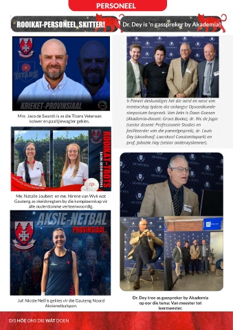 ROOIKAT-PERSONEEL SKITTER! Dr. Dey is 'n gasspreker by Akademia!