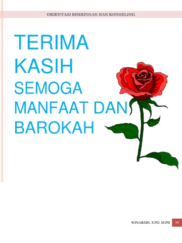 ORIENTASI BIMBINGAN DAN KONSELING TERIMA KASIH SEMOGA MANFAAT DAN BAROKAH WINARSIH, S.PD, M.PD 38