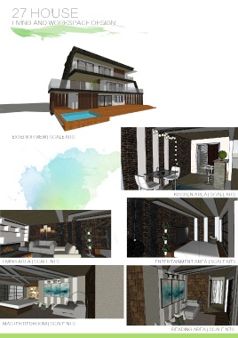 27 HOUSE LIVING AND WORKSPACE DESIGN EXTERIOR VIEW | SCALE NTS KITCHEN AREA | SCALE NTS LIVING AREA | SCALE NTS ENTERTAINMENT AREA | SCALE NTS MASTER BEDROOM | SCALE NTS READING AREA | SCALE NTS