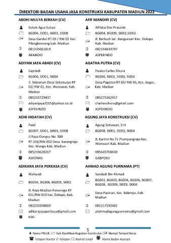 DIREKTORI BADAN USAHA JASA KONSTRUKSI KABUPATEN MADIUN 2022