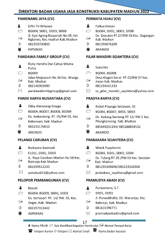 DIREKTORI BADAN USAHA JASA KONSTRUKSI KABUPATEN MADIUN 2022