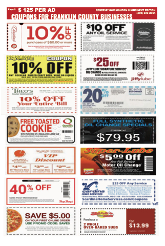 Page 9 $ 125 PER AD RESERVE YOUR COUPON IN OUR NEXT EDITION Page 6 COUPONS FOR FRANKLIN COUNTY BUSINESSES (469) 309-2364
