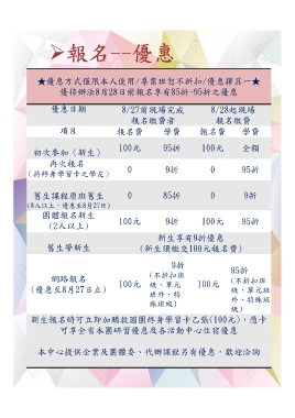 新生報名時可立即加購救國團終身學習卡乙張(100元),憑卡
