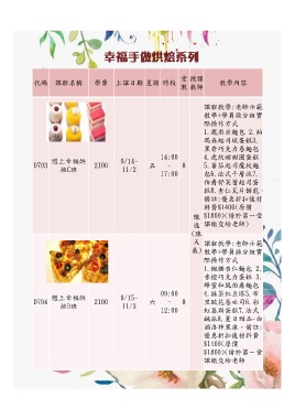 代碼 課程名稱 學費 上課日期 星期 時段 教學內容