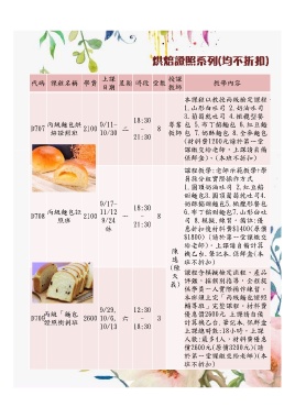 代碼 課程名稱 學費 星期 時段 堂數 教學內容
