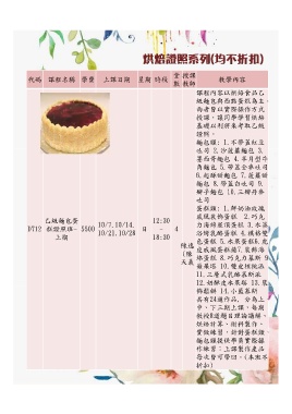 代碼 課程名稱 學費 上課日期 星期 時段 教學內容