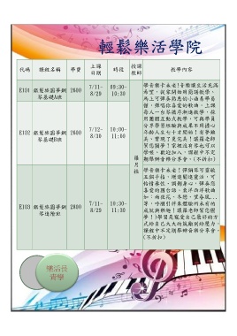 7/11- 09:30- 學音樂卡未老!音樂讓生活充滿