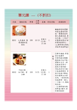 代碼 課程名稱 學費 星期 時段堂數 授課教師