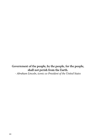 Government of the people, by the people, for the people, shall not perish from the Earth. - Abraham Lincoln, iconic ex-President of the United States 81