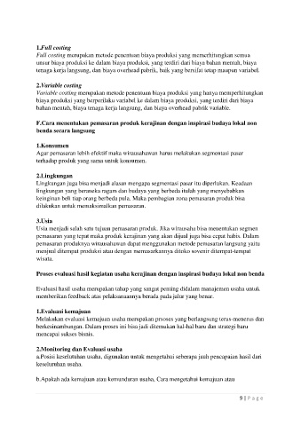 F.Cara menentukan pemasaran produk kerajinan dengan inspirasi budaya lokal non