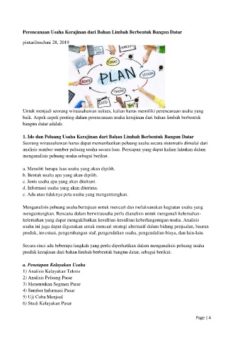 Perencanaan Usaha Kerajinan dari Bahan Limbah Berbentuk Bangun Datar