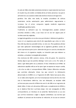 genética. Dos años más tarde, la insulina procedente de cultivos