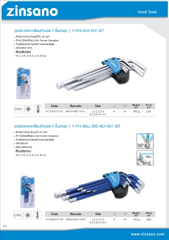ªØ´»ÃÐá¨Ë¡àËÅÕ่ÂÁËÑǺÍÅ 9 ªÔ้¹µ‹ÍªØ´ / 9 PCS BALL END HEX KEY SET