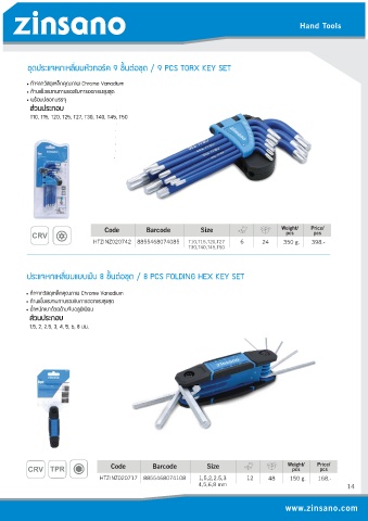 »ÃÐá¨Ë¡àËÅÕ่ÂÁẺ¾Ñº 8 ªÔ้¹µ‹ÍªØ´ / 8 PCS FOLDING HEX KEY SET
