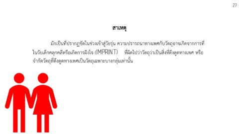 สาเหตุ มักเป็นที่ปรากฏชัดในช่วงเข้าสู่วัยรุ่น ความปรารถนาทางเพศกับวัตถุอาจเกิดจากการที่ ในวัยเด็กคลุกคลีหรือเกิดการฝังใจ ( ที่ผิดไปว่าวัตถุว่าเป็นสิ่งที่ดึงดูดทางเพศ หรือ จ้ากัดวัตถุที่ดึงดูดทางเพศเป็นวัตถุเฉพาะบางกลุ่มเท่านั น