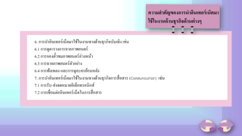 6. การนําอินเทอร์เน็ตมาใช้ในงานทางด้านธุรกิจบันเทิง เช่น