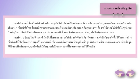 การพัฒนารูปแบบใหม่ อินเทอร์เน็ตเป็นสื่อกลางทางการค้าที่ทันสมัย ซึ่งทําให้ธุรกิจสามารถแข่งขันกับ ธุรกิจอื่นได้โดยการสร้าง
