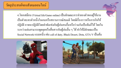4.โลกเสมือน (Virtual life/Game online) เป็นลักษณะการจ าลองตัวของผู้ใช้งาน
