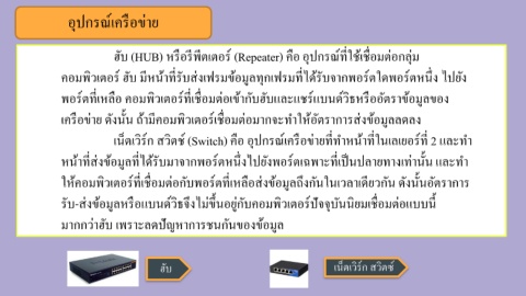 เครือข่าย ดังนั้น ถ้ามีคอมพิวเตอร์เชื่อมต่อมากจะท าให้อัตราการส่งข้อมูลลดลง