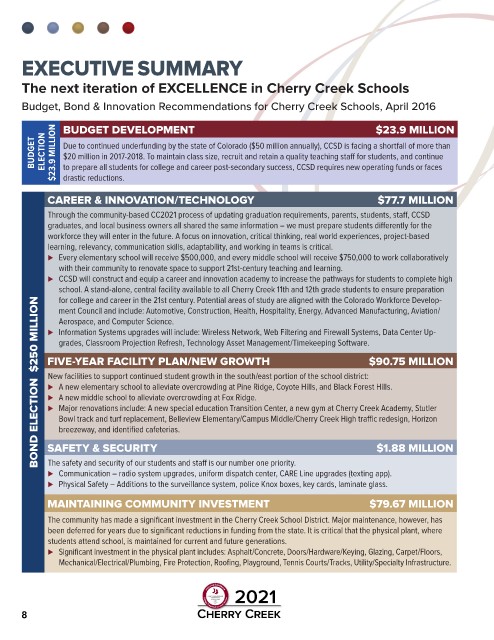 Budget, Bond & Innovation Recommendations for Cherry Creek Schools, April 2016