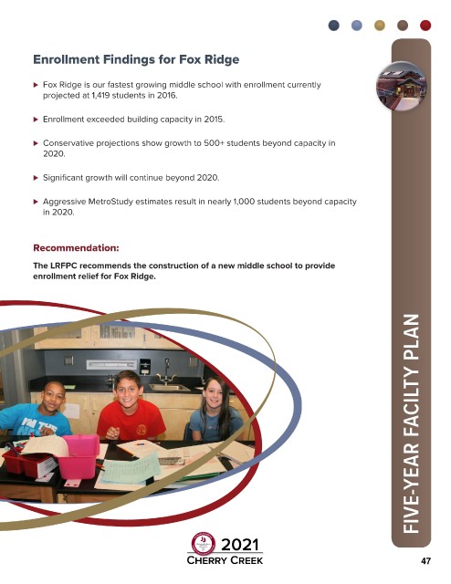 ⊲ Fox Ridge is our fastest growing middle school with enrollment currently