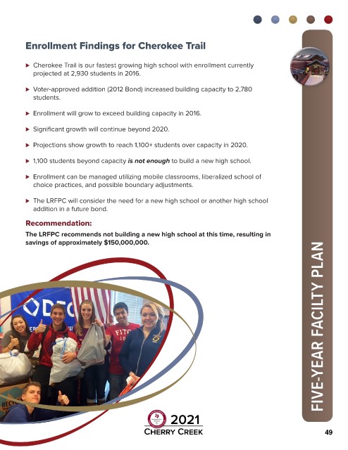 ⊲ Cherokee Trail is our fastest growing high school with enrollment currently