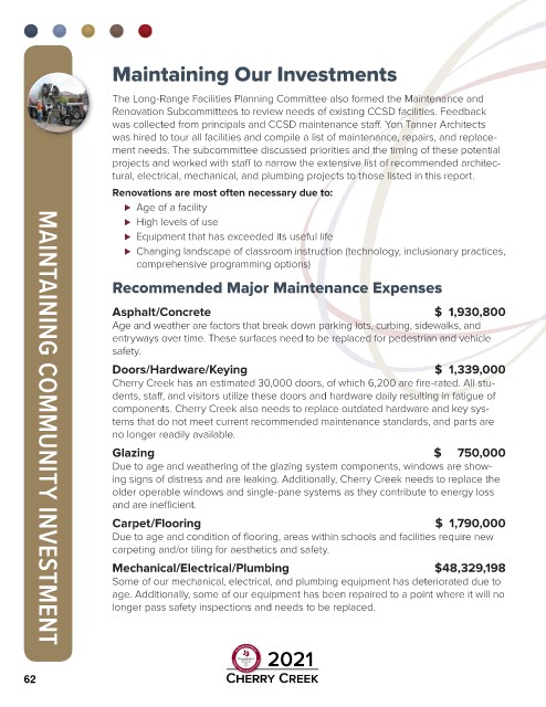 components. Cherry Creek also needs to replace outdated hardware and key sys-