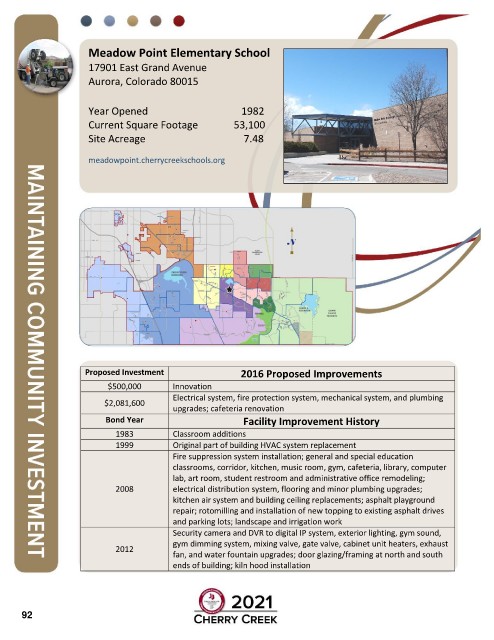 Bond Year Facility Improvement History