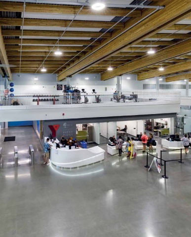 Operations of YMCA Calgary. “The interior, with its high ceilings and open