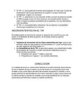Si TIR < k, el proyecto debe rechazarse. No se alcanza la rentabilidad