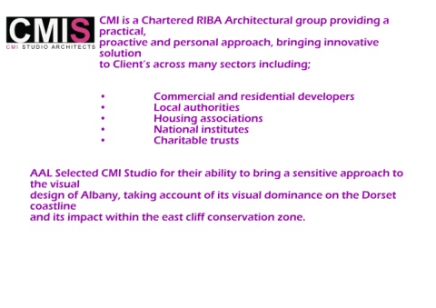 CMIS CMI is a Chartered RIBA Architectural group providing a