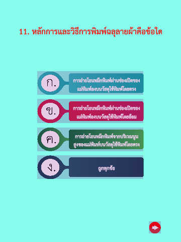 11. หลักการและวิธีการพิมพ์ฉลุลายผ้าคือข้อใด