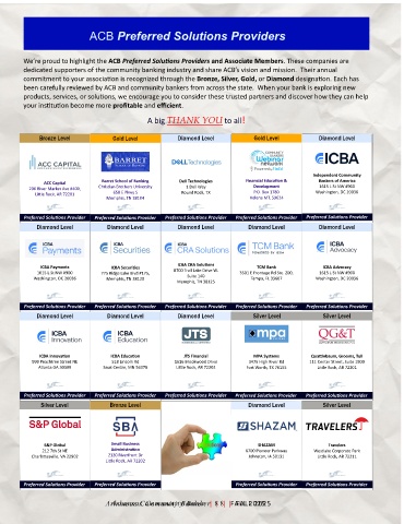 dedicated supporters of the community banking industry and share ACB’s vision and mission. Their annual