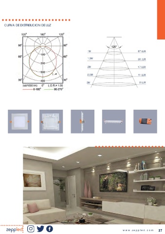 LINEA FLAT PANEL CURVA DE DISTRIBUCION DE LUZ CURVA DE DISTRIBUCION DE LUZ 1M 1M 200 LUX67 LUX 1,5M 1,5M 30 LUX 89 LUX 2M 50 LUX 2M 17 LUX 2,5M 11 LUX 2,5M 32 LUX 3M 3M 23 LUX8 LUX 21 www .ze ppl e d .co m.ze ppl e d .co m 17 www