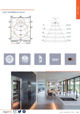 LINEA DOMO CURVA DE DISTRIBUCION DE LUZ 1M 203 LUX 1,5M 90 LUX 2M 50 LUX 2,5M 32 LUX 3M 22 LUX www .ze ppl e d .co m 43