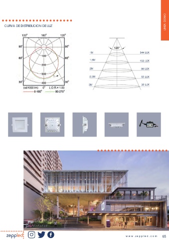 LINEA DOMO CURVA DE DISTRIBUCION DE LUZ 1M 344 LUX 1,5M 153 LUX 2M 86 LUX 2,5M 55 LUX 3M 38 LUX www .ze ppl e d .co m 65