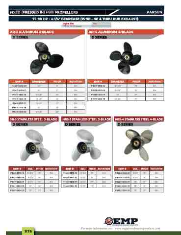 FIXED (PRESSED IN) HUB PROPELLERS 75-90 HP • 4-1/4" GEARCASE (15-SPLINE & THRU HUB EXHAUST)