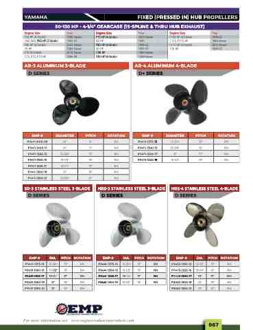FIXED (PRESSED IN) HUB PROPELLERS 50-130 HP • 4-1/4" GEARCASE (15-SPLINE & THRU HUB EXHAUST)