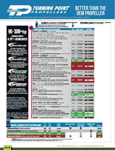 Installation Kits & Corresponding Prop Housings are Compatible with, and Upgrade Competitors’ Hub & Prop Systems. Interchangeable with Mercury® Flo-Torq II®, Michigan Wheel® XHS®, Solas® RubexTMhubkkitittsystems. NOTE: Not applicable wiitthTTurning Point’s 10, 20 and200HHuubbKKititsesreires.