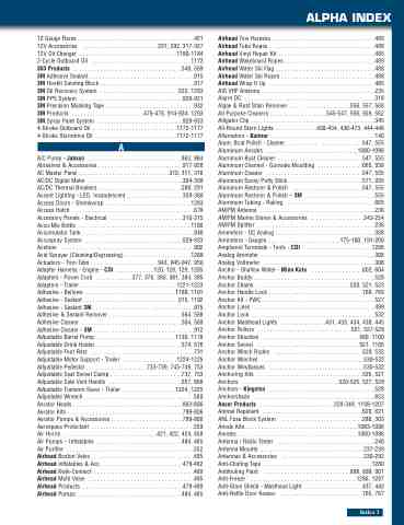 A/C Pump - Jabsco . . . . . . . . . . . . . . . . . . . . . . . . . . . . . . .863, 864 Abrasives & Accessories . . . . . . . . . . . . . . . . . . . . . . . . . . .917-928 AC Master Panel . . . . . . . . . . . . . . . . . . . . . . . . . . . . . .310, 311, 316 AC/DC Digital Meter . . . . . . . . . . . . . . . . . . . . . . . . . . . . . . .304-308 AC/DC Thermal Breakers . . . . . . . . . . . . . . . . . . . . . . . . . . .289, 291 Accent Lighting - LED, Incandescent . . . . . . . . . . . . . . . . . .359-368 Access Doors - Shrinkwrap . . . . . . . . . . . . . . . . . . . . . . . . . . . .1283 Access Hatch . . . . . . . . . . . . . . . . . . . . . . . . . . . . . . . . . . . . . . . .678 Accessory Panels - Electrical . . . . . . . . . . . . . . . . . . . . . . . .310-315 Accu-Mix Bottle . . . . . . . . . . . . . . . . . . . . . . . . . . . . . . . . . . . . .1180 Accumulator Tank . . . . . . . . . . . . . . . . . . . . . . . . . . . . . . . . . . . .846 Accuspray System . . . . . . . . . . . . . . . . . . . . . . . . . . . . . . . .929-933 Acetone . . . . . . . . . . . . . . . . . . . . . . . . . . . . . . . . . . . . . . . . . . . .902 Acid Sprayer (Cleaning/Degreasing) . . . . . . . . . . . . . . . . . . . . . .1288 Actuators - Trim Tabs . . . . . . . . . . . . . . . . . . . . .943, 945-947, 950 Adapter Harness - Engine - CDI . . . . . . . . . . . . .120, 128, 129, 1205 Adapters - Power Cord . . . . . . . . . . . .377, 378, 380, 381, 384, 385 Adapters - Trailer . . . . . . . . . . . . . . . . . . . . . . . . . . . . . . . .1221-1223