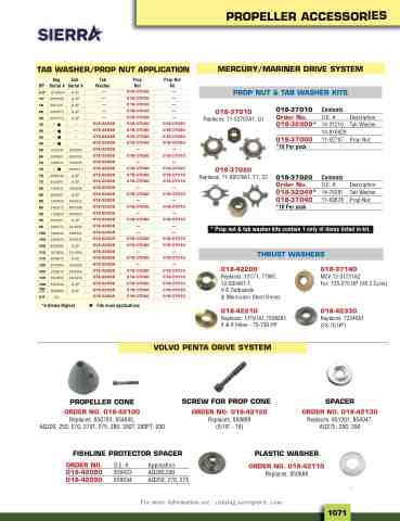 * Prop nut & tab washer kits contain 1 only of items listed in kit.