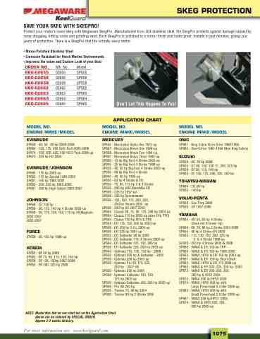 Protect your motor’s lower skeg with Megaware SkegPro. Manufactured from 304 stainless steel, the SkegPro protects against damage caused by ramp dragging, hitting rocks and grinding sand. Each SkegPro is polished to a mirror finish and looks great. Installs in just minutes, giving you years of protection. There is a SkegPro that fits virtually every motor.