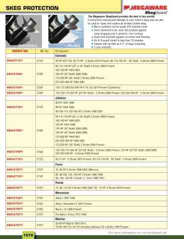 • Drain hole prevents against corrosion and freezing • Do-It-Yourself install in less than 10 minutes • Installs with as little as 2-3” of skeg remaining • 3 year warranty