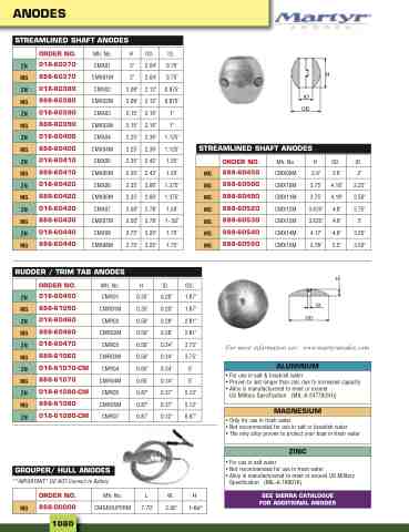 SEE SIERRA CATALOGUE FOR ADDITIONAL ANODES