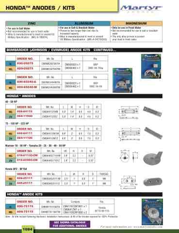 SEE SIERRA CATALOGUE FOR ADDITIONAL ANODES