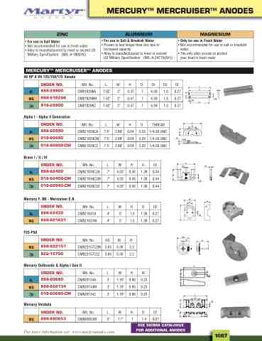 SEE SIERRA CATALOGUE FOR ADDITIONAL ANODES