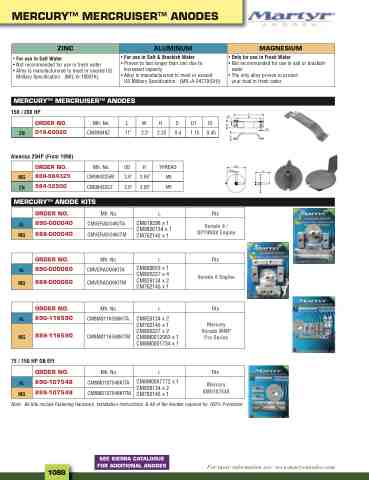 SEE SIERRA CATALOGUE FOR ADDITIONAL ANODES