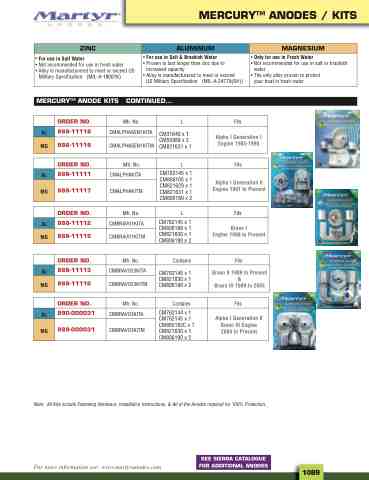 SEE SIERRA CATALOGUE FOR ADDITIONAL ANODES